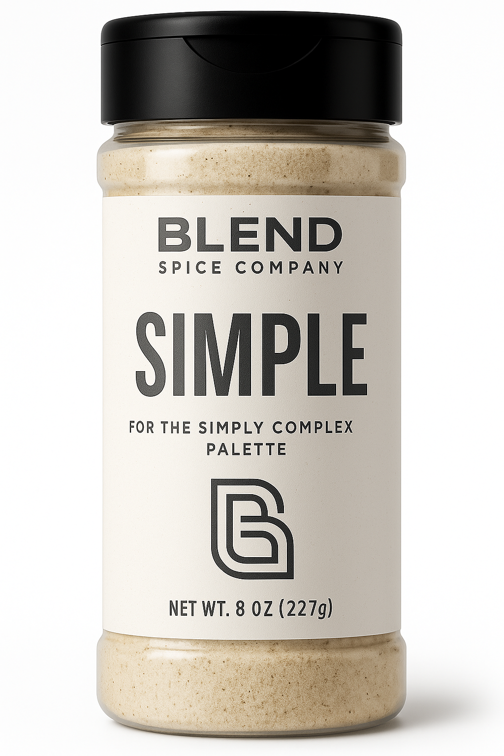 SIMPLE is a refined blend of — Himalayan pink sea salt, bold Tellicherry black pepper, sweet toasted onion, and deep, umami-rich black garlic — Every ingredient earns its place — for the simply complex palette.